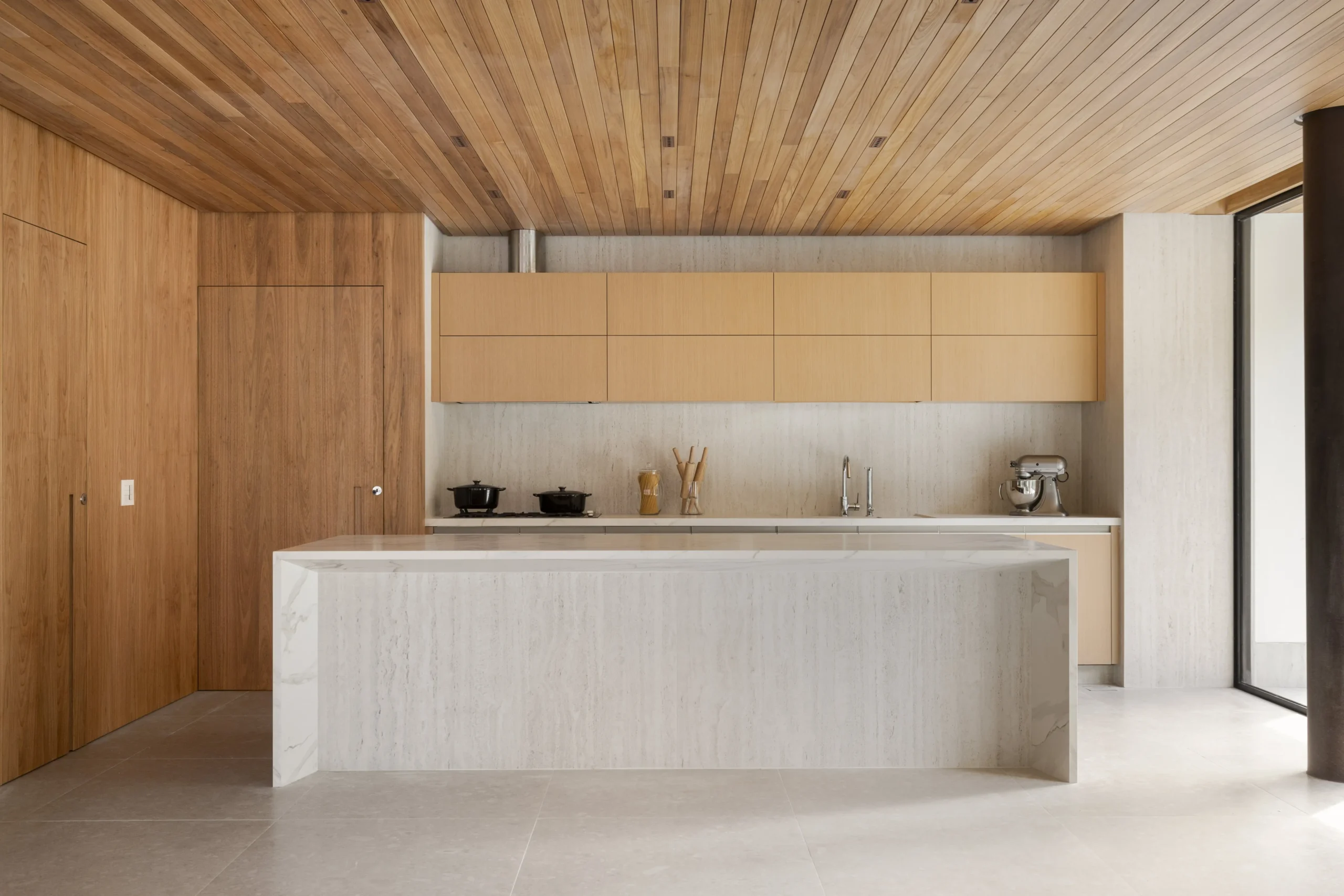 O equilíbrio de materiais foi explorado para manter o aconchego e a modernidade. Nós escolhemos tons neutros para preservar a elegância e destacar ainda mais a paisagem do entorno imediato. Cada detalhe do projeto foi pensado com a intenção de acolher e envolver a natureza.