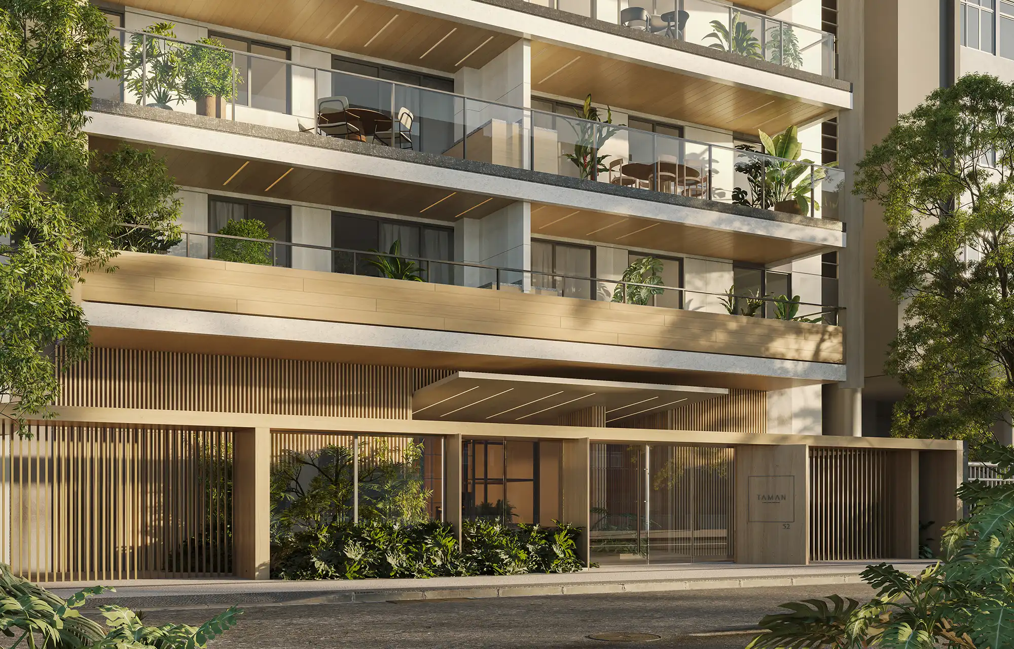 De composição intensa, refinada e com materiais nobres, o Taman Contemporâneo traz um frescor para a atmosfera do bairro. As varandas, com suas luzes flutuantes, criam uma sensação única e surpreendem.
